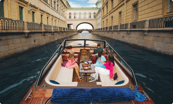 Мы знаем, что речные прогулки — это незабываемое развлечение, которое сильно отличается от других видов транспорта свежим воздухом и недоступными ранее видами на достопримечательности города с воды. Мы знаем, что речные прогулки — это незабываемое удовольствие, поэтому водные прогулки с командой обязан себе позволить каждый гость Санкт-Петербурга. И, конечно, каждый житель города должен периодически баловать себя ими.